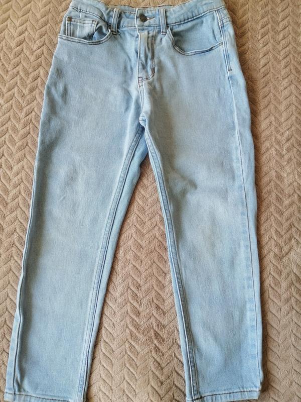 Джинсы качественные, красивый голубой цвет, без нюансов, в талии регулируются, длина 77 см, шаг 55 см, пол талия 32 см.