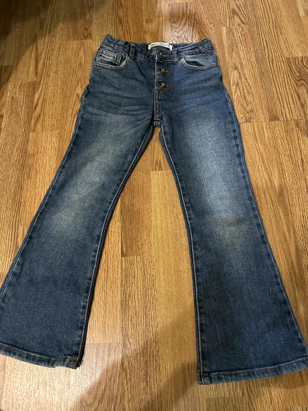 Стильные джинсы, фирма Зара В поясе утяжка, с карманами, внизу клеш Удобные, красиво садятся Размер 7 лет (122 см), могут быть и раньше В хорошем состоянии, без дефектов