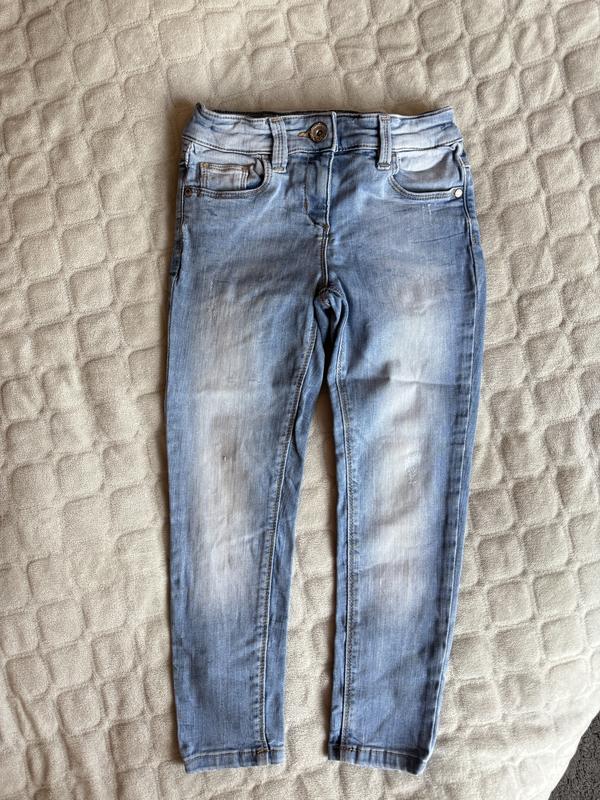 Блакитні джинси Next приблизно на 7-8 років, гарно тягнуться, в ідеальному стані, є утяжка. Підійдуть як хлопчику так і дівчинці. Заміри: довжина 69 см, крок 50 см, пояс 29 см( є утяжка). Футболочка теж в наявності. Перешлю.