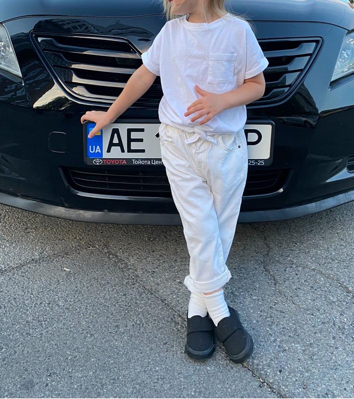 Одягнені один раз. Джинси як нові, довжина 50 см , внутрішній шов 32, пів обхват талії 22( резинка)