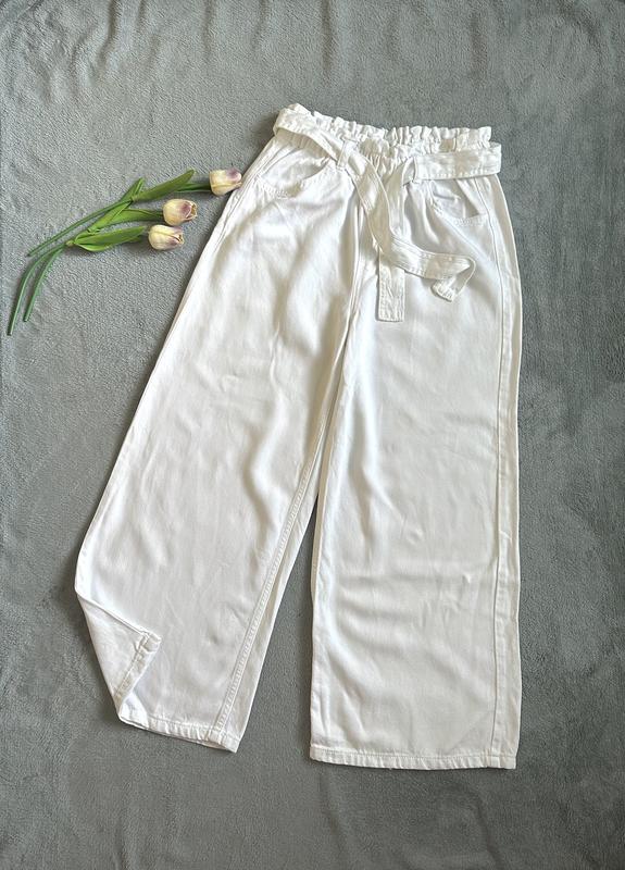 Укорочені широкі джинси Манго на дівчинку 13/14 років білі джинси для дівчинки фірма Mango; По бірці 13/14 років; Модель укорочена; Можливо будуть швидше; Заміри : 13/14 років /164 см - довжина 90,5 см, крок 58,5 см, пояс в півобхваті 31,5 см, ширина штанки внизу 28 см; Білий колір. Пояс гумка. Джинс мʼякий на дотик, не плотний. СКЛАД 100% БАВОВНА