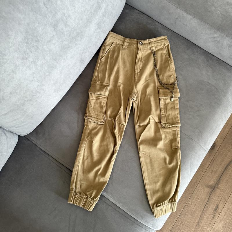 Класні штани карго фірми Reserved. На ріст 134 см. Довжина 75 см, пояс 30 см, шаг 52,5 см.