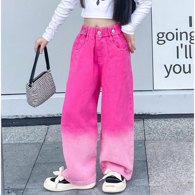 10799 ==РОЗМЕР 140===== длина 80 см шаговый 53 см пояс 24 см бедра 41 см ===РОЗМІР 150=== длина 83 см шаговый 56 см пояс 25 см бедра 42 см Цвет: розовый градиент (омбре) Материал: джинс (хлопок с небольшим добавлением эластана) Карманы: 4 (2 передние, 2 задние) Пояс: комбинированный (резинка + пуговица) Тип штанин: широкі (wide leg) Застежка: пуговица и молния Сезон: весна / лето / осень Уточняйте пожалуйста наличие размера перед заказом