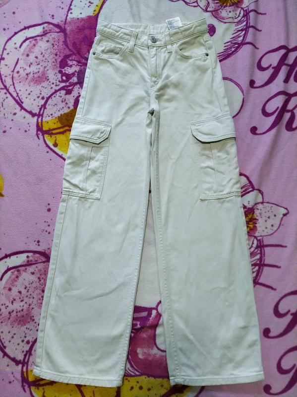 Летние, белые, модные джинсы палаццо для худи девочки 8-9 р-H&M в отличном состоянии. Длина-84 см,шаговый-64 см,пояс-30 см,еет утяжка,бедра-38 см, ширина штанины -21 см