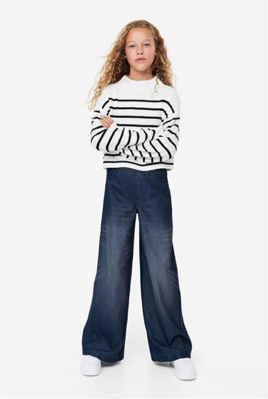 Розмір - 14+ Склад - Cotton 72%, Polyester 19%, Elastanе Не щільний джинс, мʼякий і дуже гарно тягнеться Заміри: Довжина - 100 см, довжина по внутрішньому кроковому шву - 76 см., півобхват по поясу - 33 см (тягнеться десь до 40 см), півобхват по лінії стегон +-45 см., посадка спереду -26 см., посадка ззаду - 34 см., ширина штанини по низу - 31 см