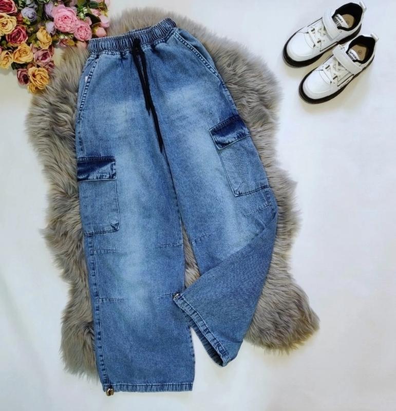 Очень стильные джинсы карго для красавиц ткань эластичная, пояс тянется, производитель Турция 🔹9р (134) - длина 90, шаг 63, пояс 26, бедра 45 🔹10р (140) - длина 93, шаг 66, пояс 26, бедра 46 🔹15р (170) - длина110, шаг 83, пояс 29, бедра 52