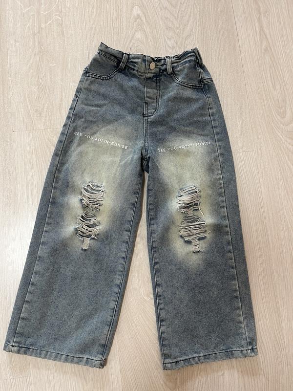 Джинси палацо, рвані, 100% коттон, талія на резинці позаду, є кишені. Стильні, сучасні та легкі.