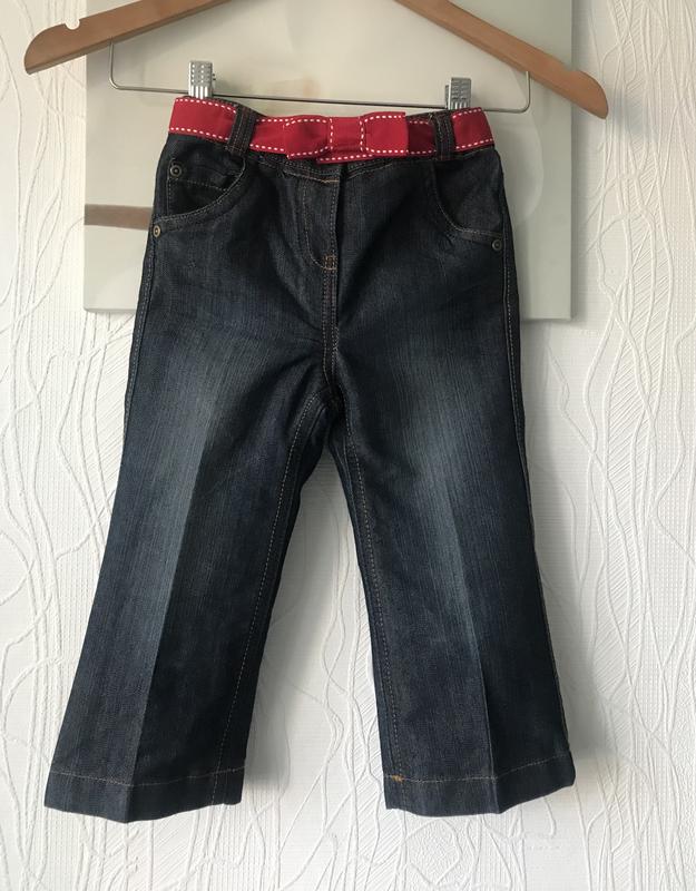Джинси на маленьку модницю 2-3р. Тканина середньої щільності, дитині буде комфортно В талії утяжка Червоний поясок застібається на липучку, його можна зняти при бажанні Довжина 52/32 см Посадка 19/27 см НОТ 25 см