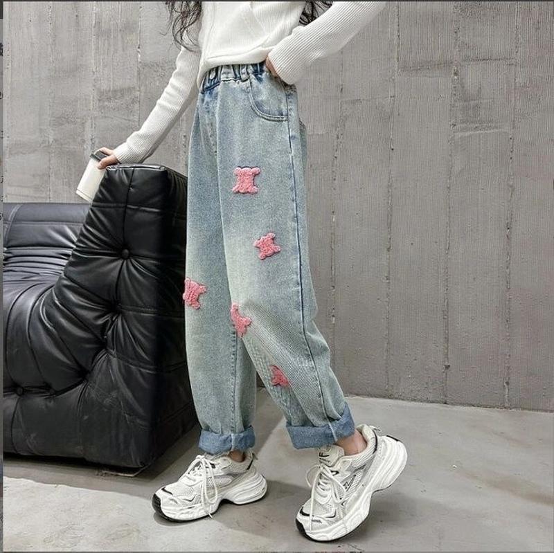 🎯В НАЯВНОСТІ Дроп\Опт 745 грн Стильные джинсы для девочек 🖤 Пояс на резинке 🖤 Сзади есть карманы 🖤 Красивая объемная нашивка 💣 Хорошее качество 🚛Доставка 1-2 дня 120(3 шт) 130(3 шт) 140(3 шт) 150(3 шт) 160(3 шт) 120-Длина 67 см шаг 43 см пояс 22*2 см 130-Длина 72 см шаг 48 см пояс 23*2 см 140-Длина 76 см шаг 50 см пояс 24*2 см 150-Длина 80 см шаг 55 см пояс 24*2 см 160-Длина 86 см шаг 59 см пояс 25*2 см Замеры сделаны одной ростовки Допустима похибка +-1-2 см