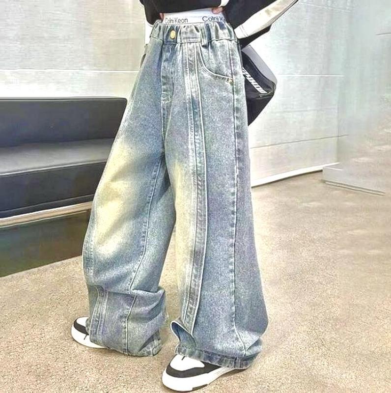 Стильні джинси для дівчинки — must-have цього сезону! Вільний фасон Трендовий ефект «вареного» деніму з акцентами на стегнах Пояс на резинці — комфорт і ідеальна посадка Глибокі кишені спереду й ззаду — стильно й практично Якісний джинсовий матеріал Розміри 120-170
