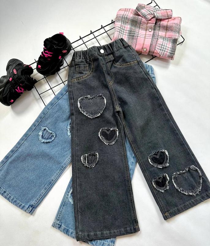 🎯В НАЯВНОСТІ Дуже круті джинси палаццо для дівчаток 🖤 Пояс на резинці 🖤 Ґудзик прикраса 🖤 Сердечка нашивка 120(3 шт) 130(3 шт) 140(3 шт) 150(2шт) 160(3 шт) Виміри 120-Довжина 68 см крок 43 см талія 22*2 см 130-Довжина 72 см крок 44 см талія 22*2 см 140-Довжина 78 см крок 49 см талія 23*2 см 150-Довжина 81 см крок 51 см талія 23*2 см 160-Довжина 88см крок 58 см талія 23*2 см Виміри зроблені однієї ростовки Допустима похибка +-1-2 см