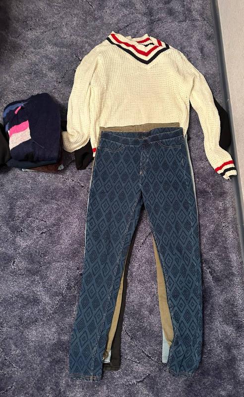Продам одяг для дівчинки xss-xs. Ціна вказана за 7 пар джинсів, одну пару велюровых штанів, 3 кофти та один кардиган. Бу.