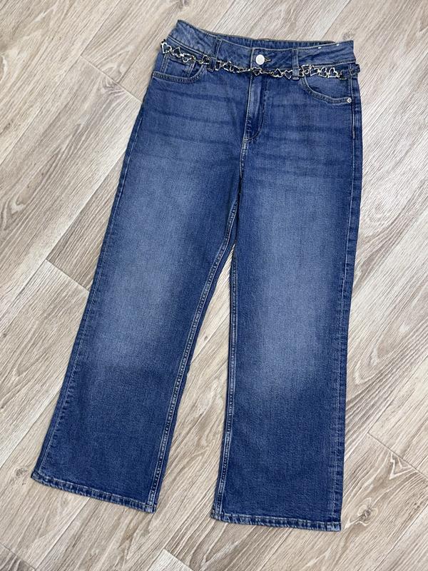 Широкие джинсы с ремешком ♥️ Состояние идеал Н&М 10-11 лет/146 Длина 88. Шаг 63. ПОТ 32+ утяжка