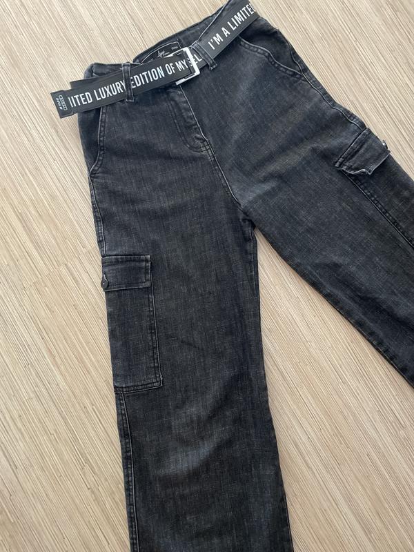Вільні джинси для дівчаток із зручним та сучасним дизайном. Спереду передбачені дві врізні кишені, а ззаду — дві накладні. Модель виконана у чорному кольорі, з високою посадкою. Ідеальний вибір для створення модного та стильного образу.