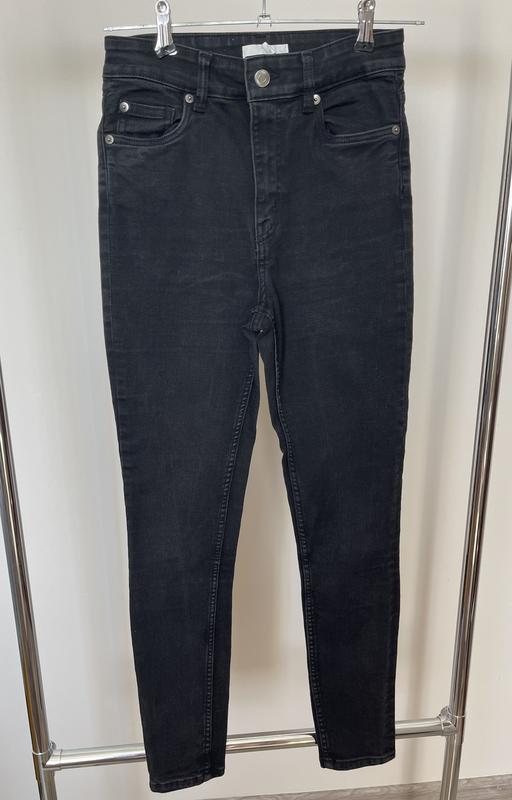 В хорошому стані Плям не помічаю На штанах вказано розмір 38 Але підійдуть на ріст 158/152 Довжина 96,5 Крок 70 Пояс 32,5 Бедра 40 Посадка з переду 28 Колір чорний