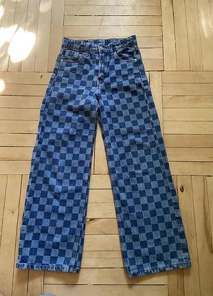 Трендові джинси палаццо в клітинку,не тягнуться,пояс регулюється.