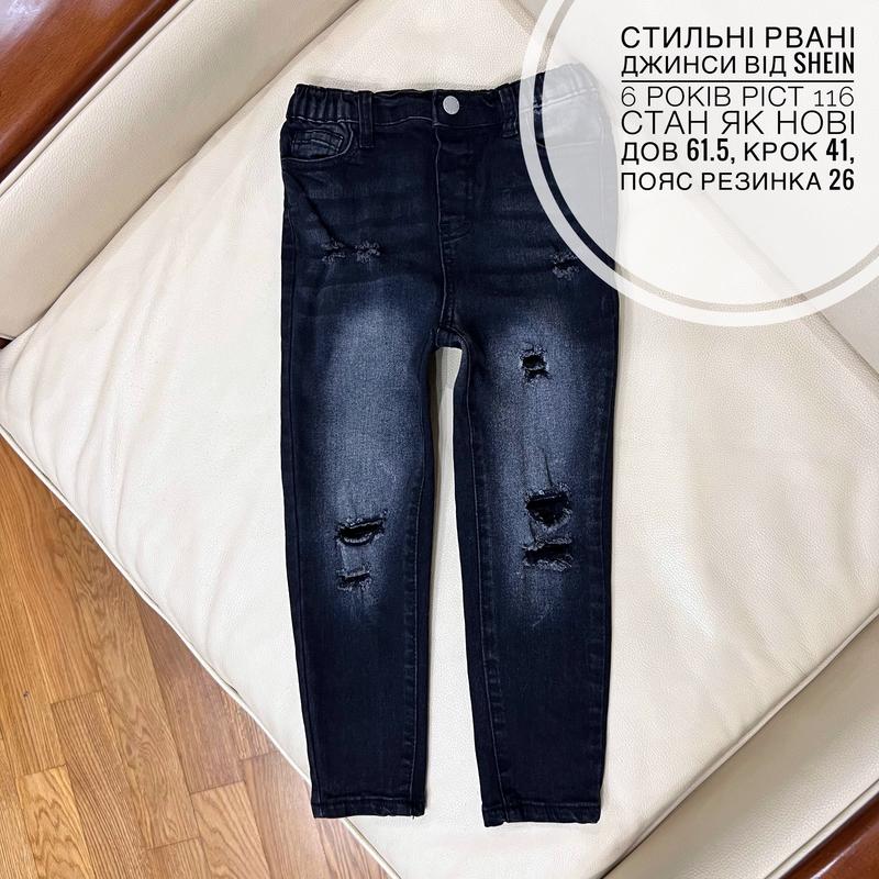 Стильні рвані джинси від SHEIN 6 років ріст 116 стан як нові дов 61.5, крок 41, пояс резинка 26