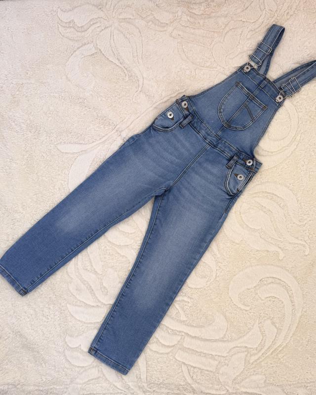 Дуже класний комбінезон джинсовий бренду Zara, розмір на етикетці 122 (7 років), але він трохи маломірить, можна брати на 5-6 років, зручно регулювати розмір. Стан ідеальний.