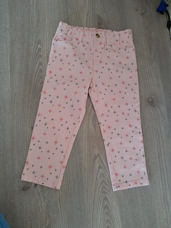 Новые брюки для девочки 2-3роки.Длина 52см, по шаговому шву 35см Ширина в поясе 26см.Уплотятся на кнопку,в поясе резинка.Ширина в бедрах 30см.