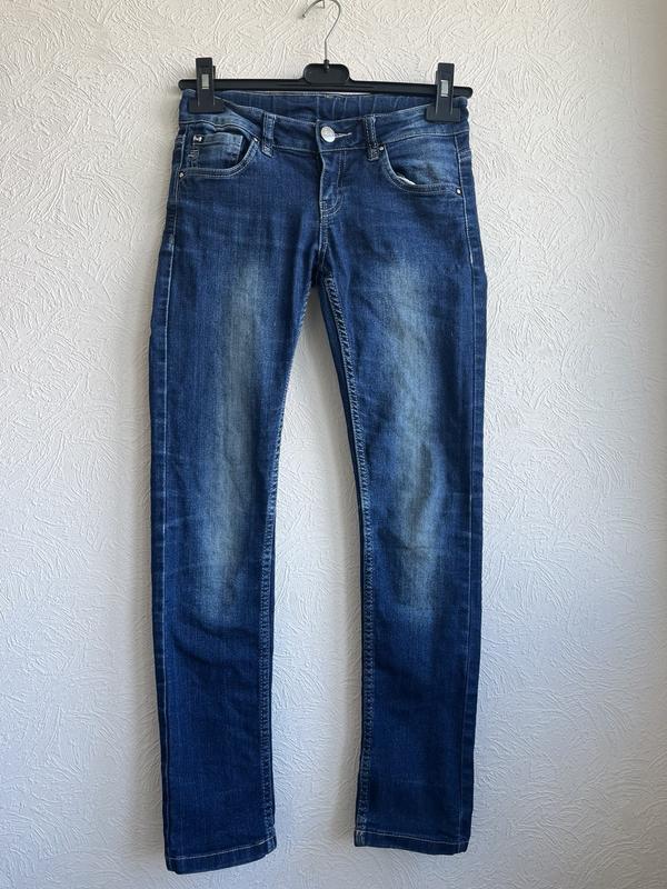 Джинсы с резинкой для утяжки в поясе. Размер 10-11 лет.. Высота 88 см, ПОТ 33, 5 см, ПОБ 38,5 см, высота посадки спереди 19 см. Цвет темно-синий.
