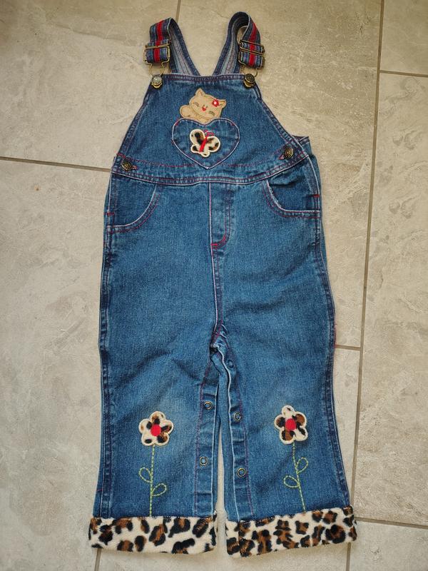 Красивый стильный джинсовый комбинезон на девочку 1,5-2 года, мыоди до 2,5. Хороший вариант на осень, весну, спинка закрыта.снизу, там где кнопки перешито вручную нитью, чтобы не расстегивается, мне так было удобнее, но можно распылить.