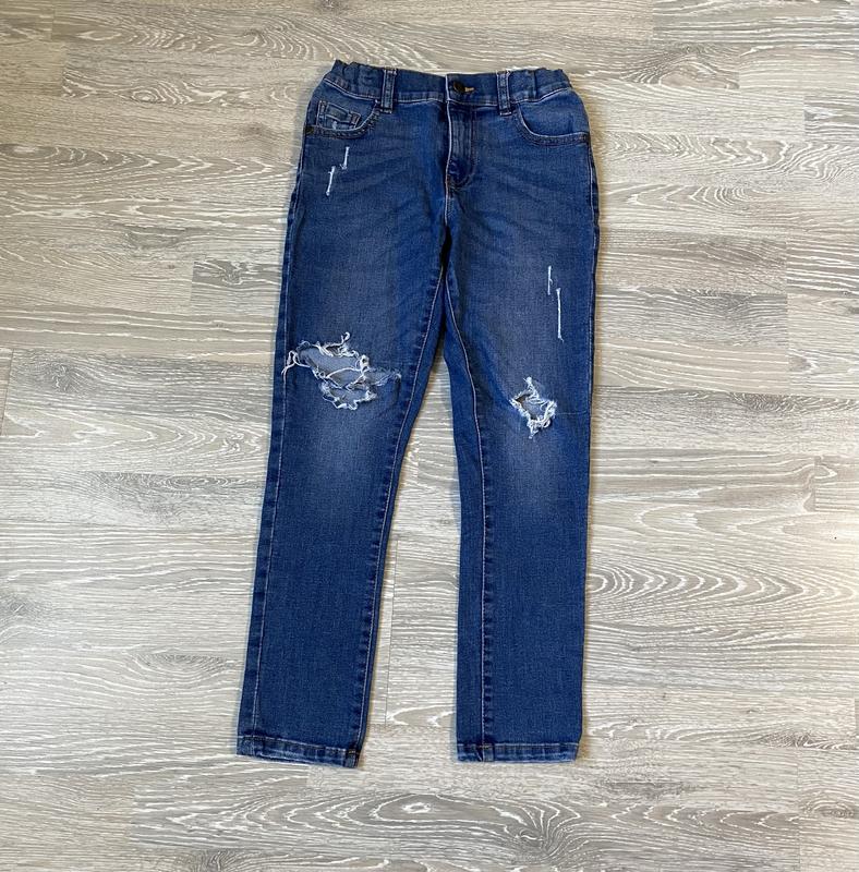 Стильні джинси M&S. 75% бавовна, 25 % поліестер. Зріст 134 см, вік 8-9 років. ДШ-80 см, крок - 61 см, Пояс - 32 см, регулюється резинкою на ґудзиках.