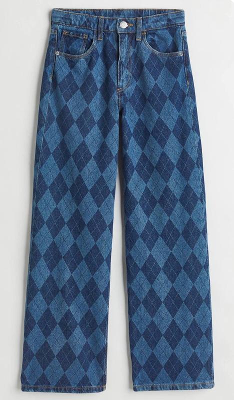 Джинси H&M в ромбики. Размер 152 см. Замеры: обʼєм по поясу 69 (вставлена резинка), полукруг бедер 50 длина по боковому шву 95, 1/2 посадка спереди 27, 1/2 посадка сзади 1/2 34, 1/2 ширина штани знизу 24 Состав: 100% cotton Хорошее состояние.