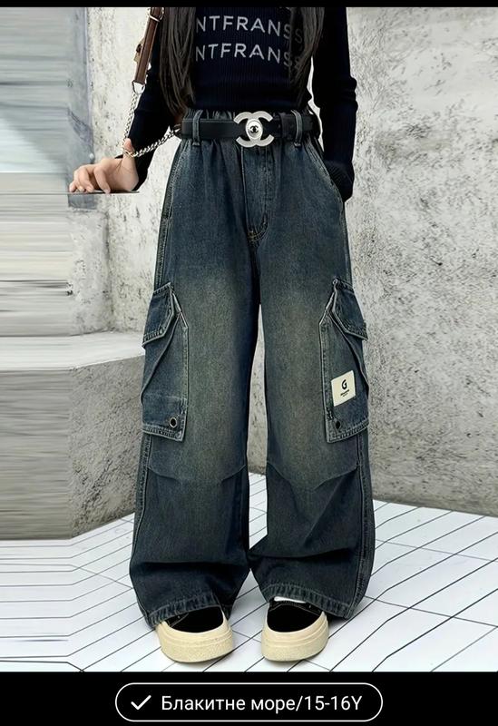 Нові джинси в ретро стилі.Супер якість,точно як на фото вони ідеальні,широкі,пояс на резинці. Длинна 98 пояс 54+