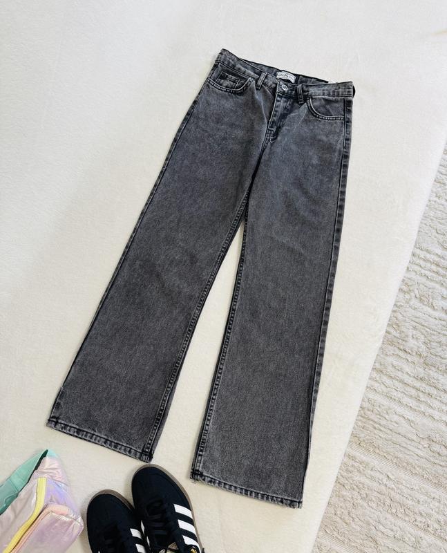 Джинси широкі Сірого кольру Джинс цупкий Розмір 12 р на зріст 146 см По поясу 32 см є резинки По бедра 44 см Довжина 91 см Крок шов 66 см