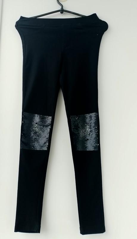Черные брюки с распашными пайетками для девочки 11-12 лет. Тканина 75 % бавовна, 19 поліестер, 6 еластан. Длина 89 си, шаговая 67 см, пояс в спокойном состоянии 30 см, посадка 21 см, бедра 33 см.Больше информации по запросу. Торг возможен.