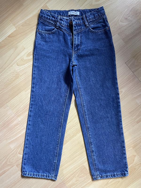 Дуже круті джинси для дівчинки від відомого бренду Солмар. Колір супер, насичений. Майже не носили, швидко виросли. Є утяжка в поясі. Виглядають як нові. Довжина 78 см, шаговий 55 см, ширина в поясі 28 см, у стегнах 36 см.