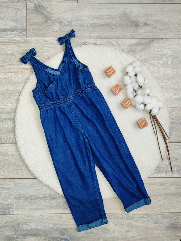 Джинсовый девчачий комбинезон для девочки 4-5 лет, 104-110 см в идеальном состоянии, легкий, не утепленный. 🌿 Длина от плеча до низа 90 см 🌿 Полуобхват бедер 38 см