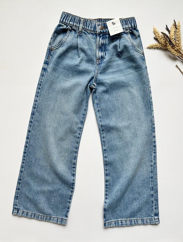 Джинси стильного широкого крою для дівчинки від британського бренду TU. Виготовлені з м’якої бавовняної тканини з еластичним поясом на резинці, мають бічні та задні кишені. Чудово поєднуються з улюбленими футболками та светриками. Тканина: 91% бавовна, 9% ліоцел.