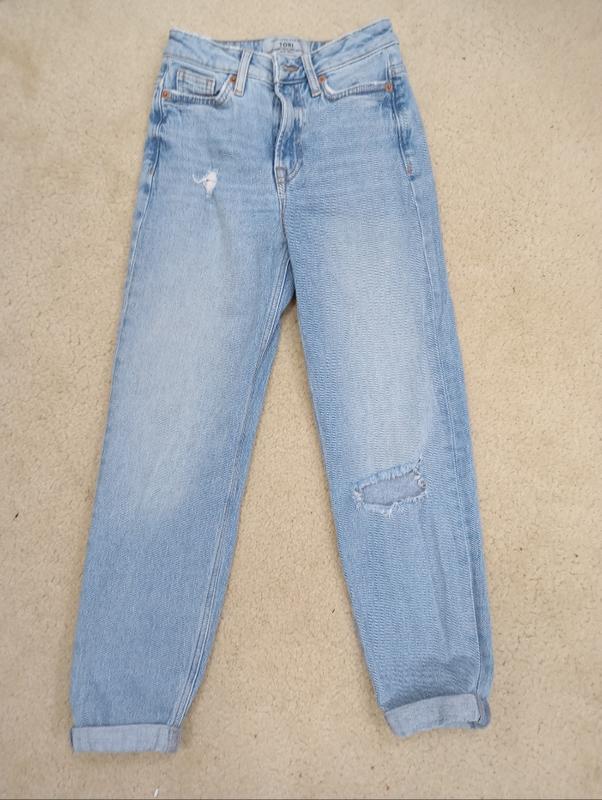 Продаю модные джинсы фасона Mom Fit Tori от бренда New Look Kind 915. Идеальный вариант для стильных образов. Состояние: отличный, б/в. Все "рваные" детали являются фабричными. Фасон: Mom Fit (свободная, высокая посадка), Comfort-Stretch (хорошо тянутся, комфортные), Tapered Leg (дышание сужены книзу), Ankle Grazer (длина до щиколотки). Цвет: Светло-голубой деним с эффектом потертостей (Washed Blue). Особенности: Высокая посадка Декоративные разрывы/дырки (на коленные и у кармана). Made in Turkey. Длина из-середины 58 см