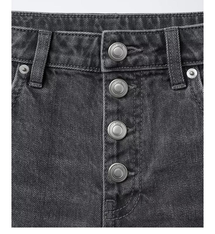 Джинси кльош із регульованою внутрішньою талією та застібкою на ґудзики спереду. Кишені спереду та накладні кишені ззаду. Колір чорний. Оригінал Zara.