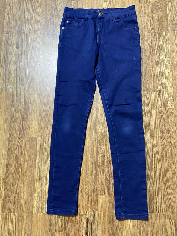 джинсы, брюки синие мягкие для девочки написано 11лет 146см стрейч пояс 35 длина 90 шаг 67 бедра 39 низ 13