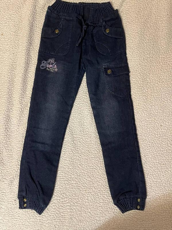 Замеры: Длина - 82 см Шаговый шов - 61 см Талия - 23 см Бедра - 41 см Ширина штанины с верха - 20 см Ширина штанины внизу - 10 см Посадка спереди - 23 см Посадка зад - 30 см Брюки имеют в середине теплую флисовую подкладку 85% - котон 15% - полиэстер Рост - 146 см