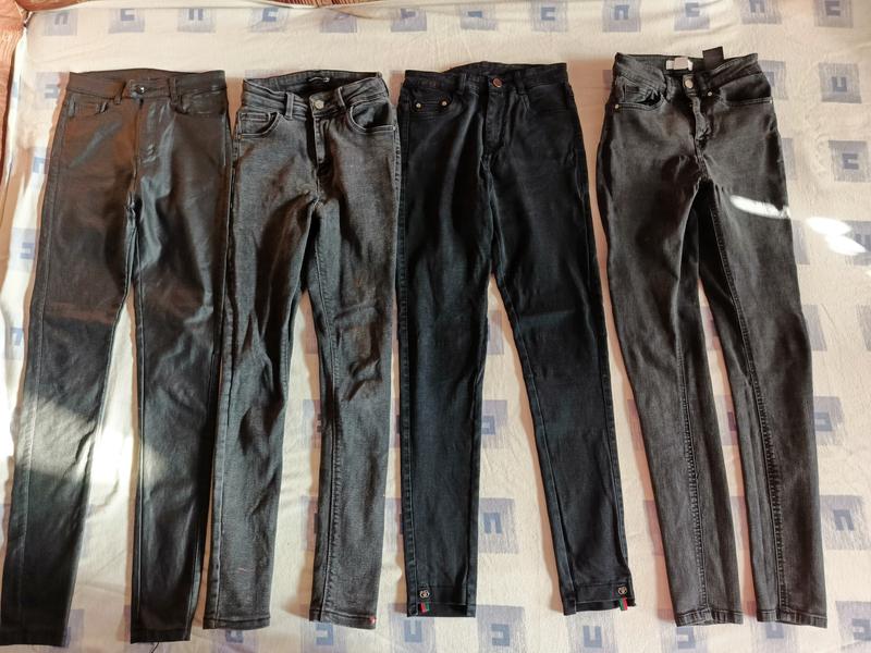 Джинси-152-158см,на худеньку дівчинку,стан для дома,замочки всі цілі. Довжина по боковому шву-95-98см,в поясі-25-28см,бедра-36-38см. Ціна за всі.