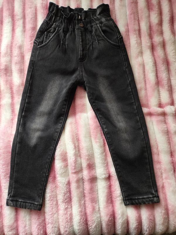 Тёплые, плотные джинсы на резинке, на флисе. Очень хорошее состояние, можно сказать идеальное. Дл -64.5, шаг.-40, талия 25 в растянутом 30