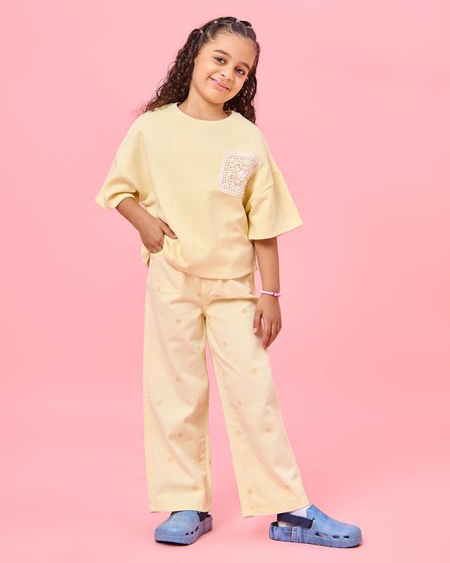 Дитячі жовті джинси палацо в квіточку на 3-4роки