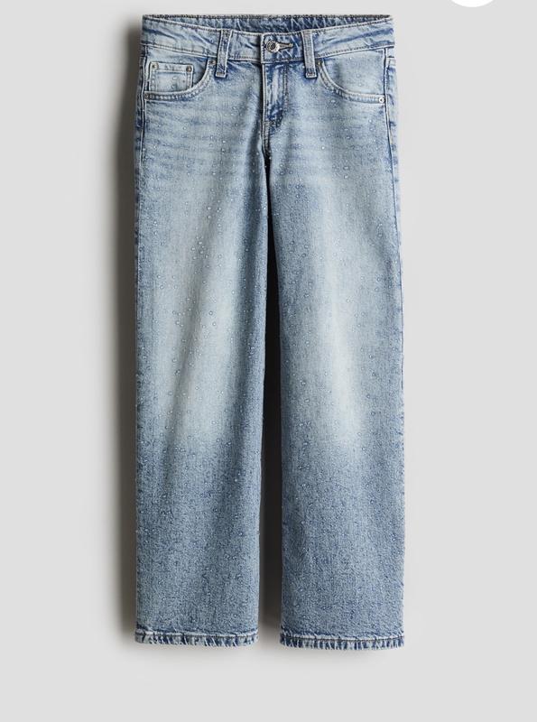 Джинсы прямого кроя Украшены стразами Есть утяжка Н&М 11-12 лет/152 Длина 91. Шаг 70. ПОТ 34. ПОБ 47