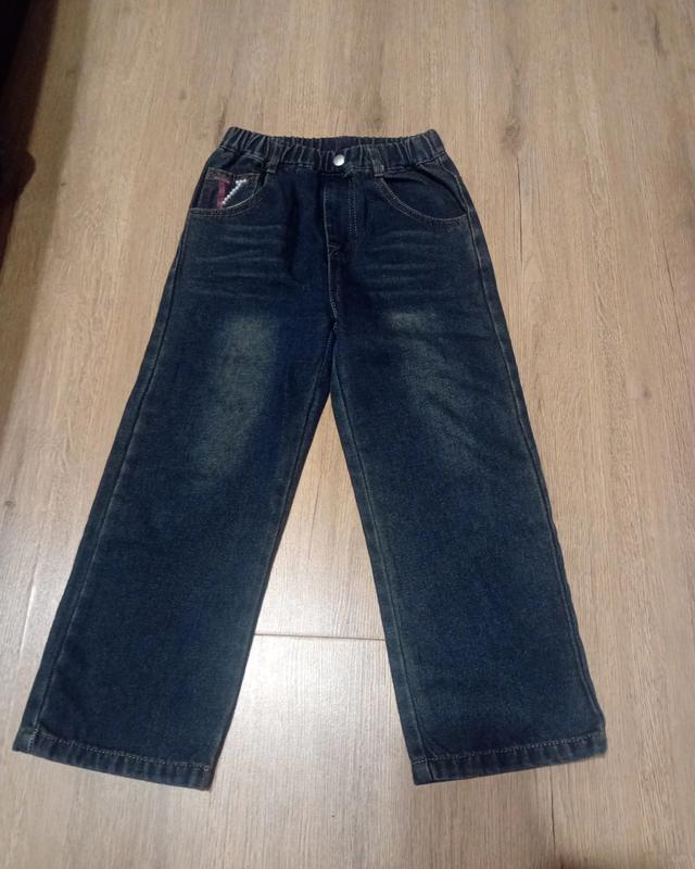 Новые стильные джинсы палаццо для девочки, умаломерят.Заказаны из Китая, не подошли.Вказано 7 лет, но фактически это на 5 или 6 лет, когда ребенок не высок.Длина по боковому шву 71 см.Очень красивый цвет,подходят на осень и зиму