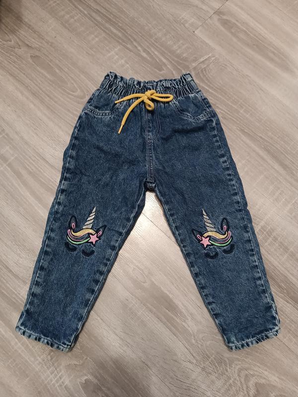Джинсовые брюки для девочки на меху, размер 92см (18-24месяцы) состояние новых. Длина от пояса 55см, шаг 33см