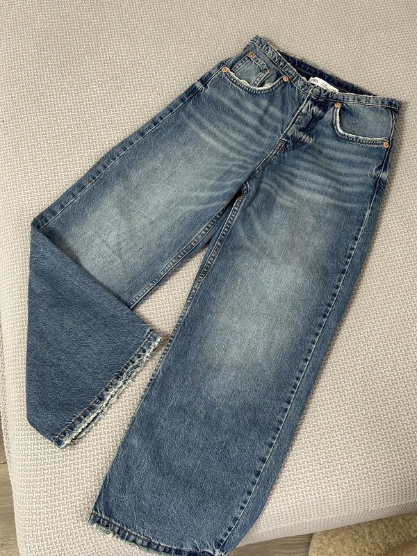 Новые джинсы на девочку Трендовый фасон и нету «пояса»😏 Джинсы новые, заказывали в прошлом году с сайта, но бумажная бирка оторвалась где-то Размер на 140, в поясе утяжка Замеры: Шаг 60 Длина 83 Посадка 24/30 Пояс 30 Бедра 43 Ширина штанины внизу 23