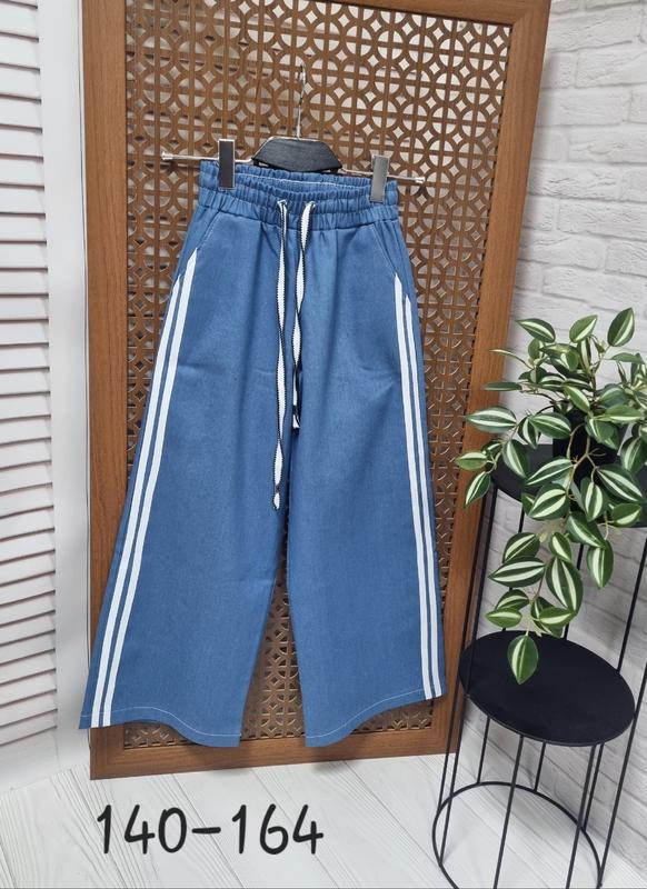 🥰Модні штанці Виглядають дуже гламурно Вдала посадка Рекомендую Тканина -джинс 🎀146-довжина 85,крок 61,пояс 27,поб 46 +-2 см
