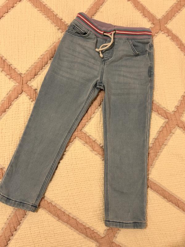 Джинси в ідеальному стані. Тканина щільна, не тонка. В поясі на резинці, регулюється. Довжина штанів- 62 см.