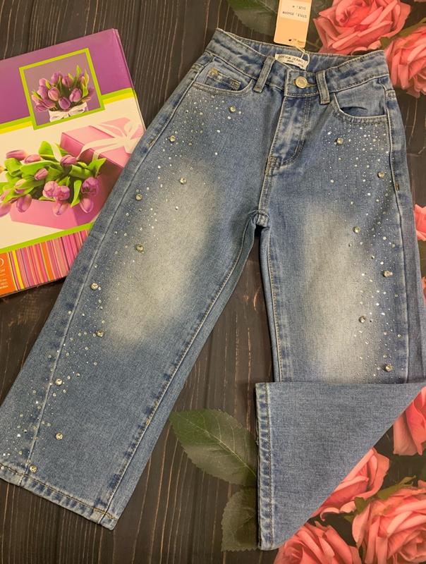 через кнопку купити тільки повна оплата!!! джинси для дівчинки ✔тканина: джинс зі стразами ✔додадково: пояс має внутрішню утяжку, є кишені, якість супер, рекомендую, колір блакитний Арт. Розмір-пояс/бедра-довжина/крок Погрішність +~1-2 см ✅4-24/41-65/44 ✅6-25/43-72/50 ✅10-29/47-86/61 ✅12-31/49-94/68 Куха