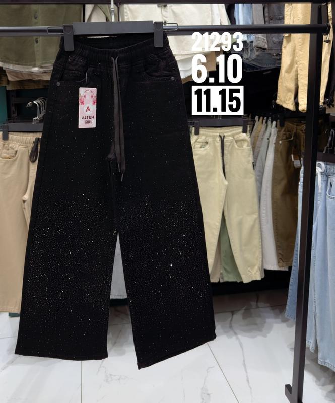 НОВИНКА ВЕСНИ! Джинсы для девочки с камушками. Производитель - Турция Пояс на широкой резинке есть рабочий шнурок, есть карманы. Качество супер! Рекомендую! ЦВЕТ ЧЕРНЫЙ! Цена 1450 грн замеры: длина/шак/пояс/бедра 146-91/65/27/49 152-96/68/28/50 158-98/70/29/51 164-103/74/30/52 170-105/76/31/53 +- 2 см 146-2шт 152-2шт 158-2шт 164-2шт 170-2шт