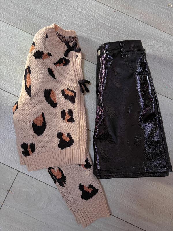 Спідниця еко шкіра Чорна Кофточка леопардовий Розмір 140 9-10років