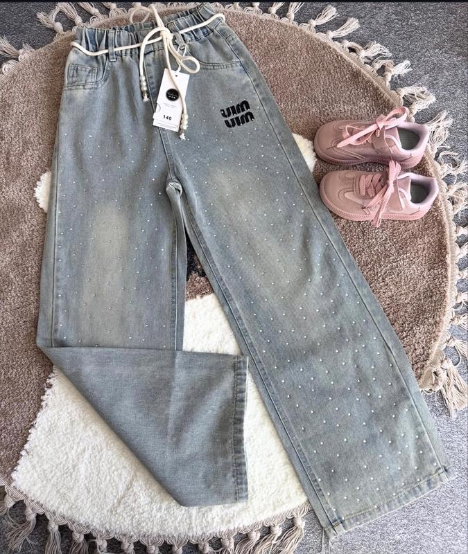 Новинки Весна 2026 Стильные джинсы для девочки Пояс на резинке Спереди и сзади по 2 кармана Усыпанные стразами (хорошо держатся) Вышивка спереди и сзади Очень круто выглядят 😍 Хорошее качество!Рекомендую 👍🏻 130- длина - 80 см, крок- 56 см, бедра 36 см,пояс - 23 см (5 шт) 140 - длина - 85 см, крок- 60 см, бедра 38 см,пояс - 23 см (7 шт) 150- длина - 88 см, крок- 62 см, бедра 40 см, пояс - 23 см(6 шт) 160 - длина - 95 см, крок- 68 см, бедра 42 см, пояс - 24 см(6 шт) 170 - длина - 100 см, крок- 72 см, бедра 44 см,пояс - 26 см (5 шт)